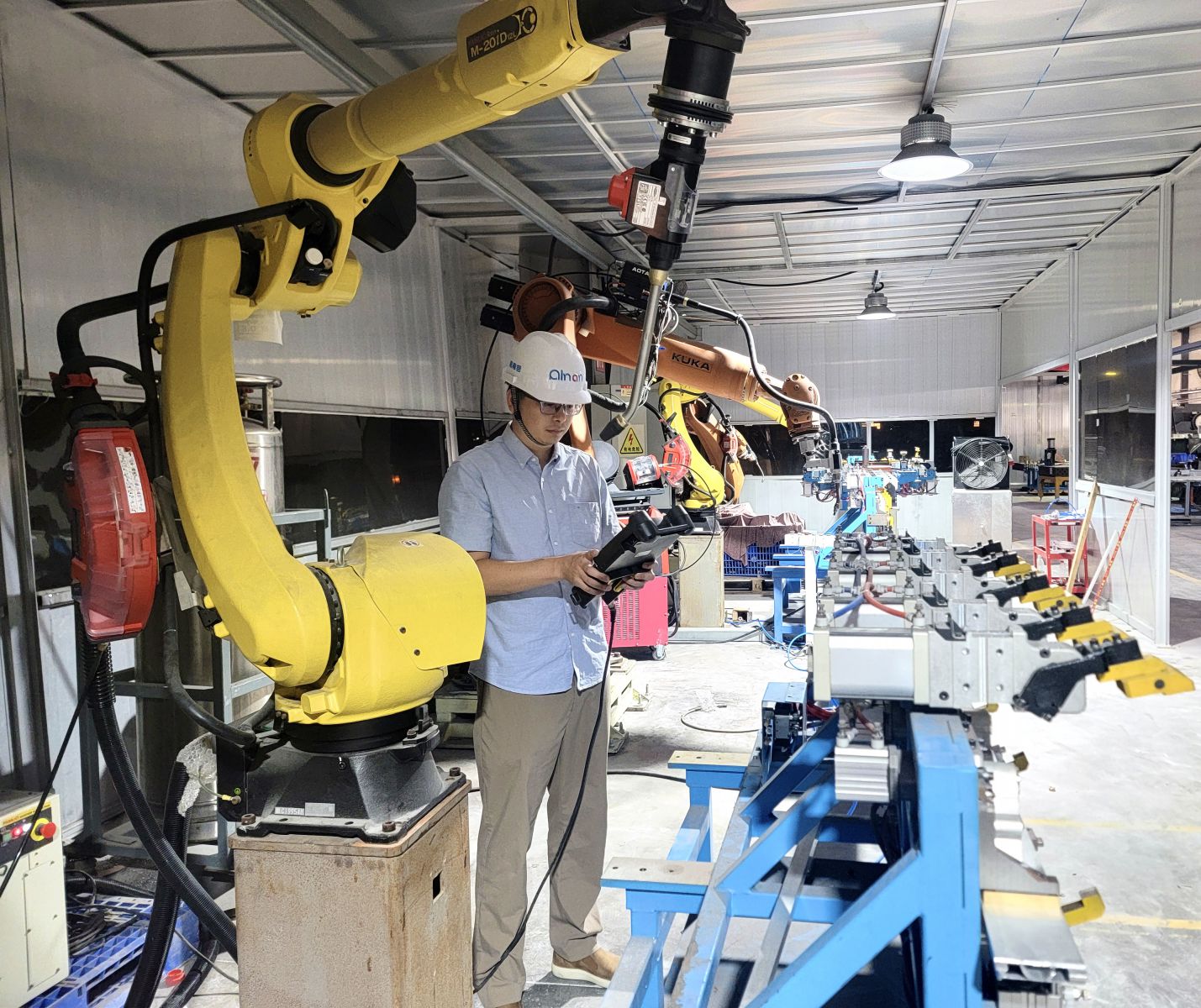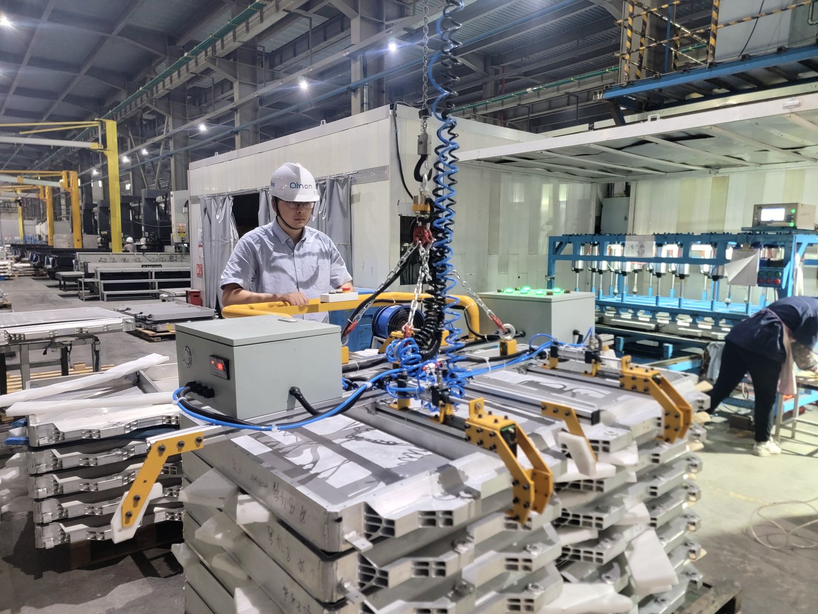 ? 2023年,莫?jiǎng)P研發(fā)的鋁型材全自動(dòng)清洗生產(chǎn)線,解決了型材單件在機(jī)加工后的清潔問題,減少了氣孔、焊渣、飛濺等焊接缺陷,大幅提升了清潔效率和焊接質(zhì)量;同年,完成了四軸聯(lián)動(dòng)加工系統(tǒng)在門檻梁、防撞梁等多面體加工應(yīng)用的研發(fā),大幅提升了加工效率和質(zhì)量;完成了6條電池托盤生產(chǎn)線的開發(fā)和建設(shè),研制了超過400件電池托盤專用工裝夾具和20臺(tái)專用設(shè)備;新建和改造機(jī)器人智能焊接工作站30套,實(shí)現(xiàn)電池托盤產(chǎn)能大幅提高,為公司新能源汽車市場(chǎng)拓展提供了堅(jiān)實(shí)保障。