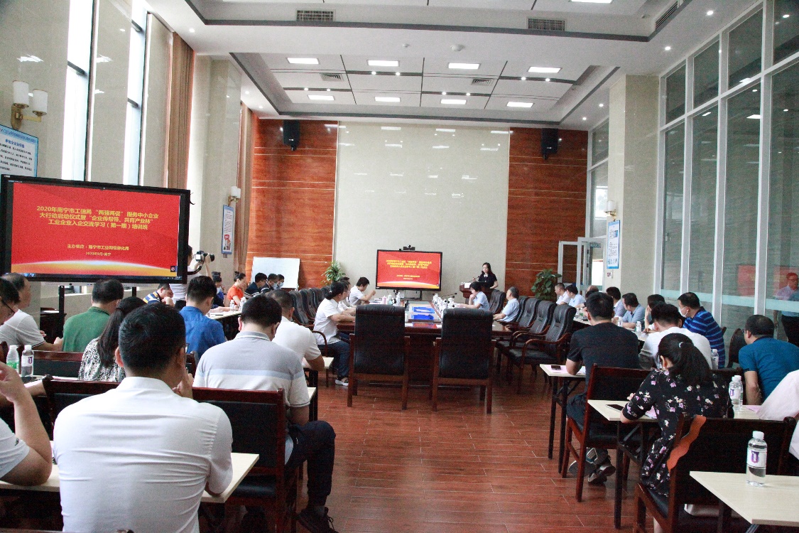 ? ? ? ? 9月22日上午,南寧市工信局組織來自南寧市的50多家高成長性,具有核心競爭力的小、快、高、特、新工業(yè)中小企業(yè)負責人到我公司舉辦2020年“兩強兩促”服務中小企業(yè)大行動啟動儀式暨“企業(yè)傳幫帶、共育產業(yè)林”工業(yè)企業(yè)入企業(yè)交流學習(第一期)培訓班,市工信局局長汪東明出席活動并作講話,集團人資總監(jiān)吳津生、發(fā)展總監(jiān)周麗川參加此次活動,周麗川在培訓中作《企業(yè)發(fā)展戰(zhàn)略選擇和產業(yè)轉型升級》主題授課。
